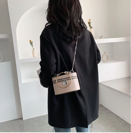 Casual Soild Metal Ring Totes Handbags Women Chain Shoulder Bags Barrel Shape Bucket Messenger Bag Ladies Leather Hand Bags 2019